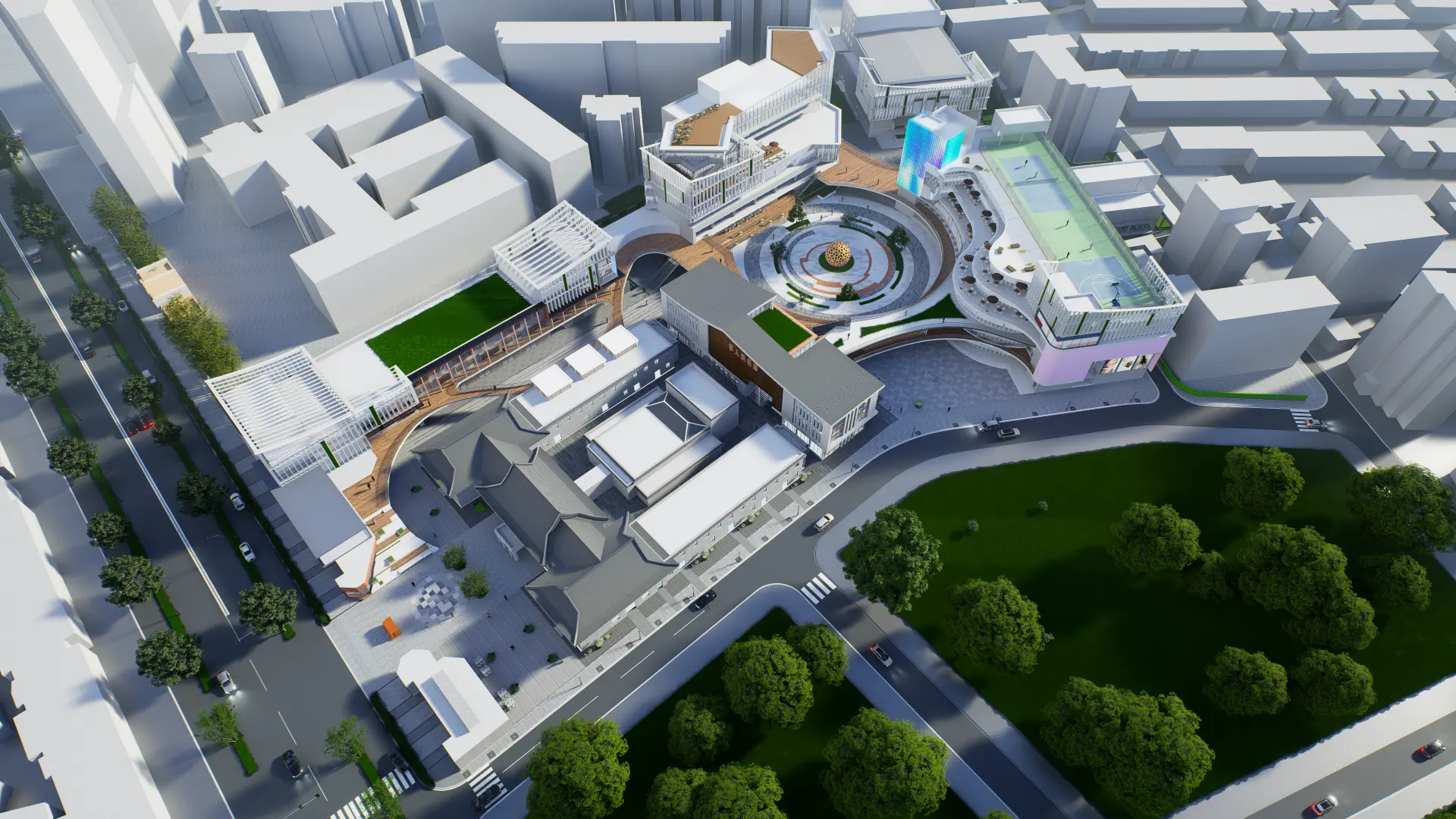 The Military Club on Shanxi Road holds shared memories for countless old Nanjing residents: every summer they would gather in the square, squeezing together to watch open-air movies. Our vision was Preserving the site’s layers of history—its complexity, coexistence, and charm—while creating future-oriented modes of production, the project aims to become a new landmark for Nanjing. It envisions a vibrant creative district that blends innovation, cultural experiences, tech-driven fashion, and nostalgic humanism. Through thoughtful public-space design and mixed-use programming, the area is reactivated and reborn, opening a new generation of urban life scenarios.